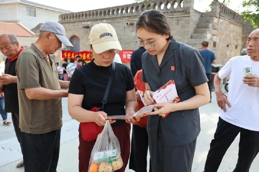 法院干警在柏山镇文化广场,发放《民法典家事案例手册》《反家暴维权指南》等宣传资料200余份,并一对一提供法律咨询,帮助群众梳理矛盾焦点,引导通过合法途径解决纠纷。