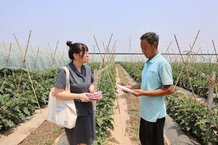 在现场,干警向大家“讲课”:“在蔬菜销售过程中,一定搞清楚买家的真实姓名、身份证号以及住址,不然对方一旦违约,在维权时会因被告不明确而造成维权困难。同时,大家要保留通话记录、聊天记录等,以防讨要货款时缺乏证据。”