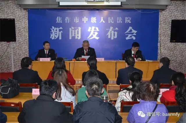 11点30分,焦作中院联合博爱县法院召开两级法院新闻发布会,通报全市法院执行工作情况。市中院党组成员、政治部主任薛拥复,党组成员、执行局局长李沙弟,博爱县委常委、政法委书记孙学锋,博爱法院党组书记、院长张红卫出席发布会。河南电视台都市频道、法制频道、新农村频道、焦作电视台等新闻媒体参加发布会。参加发布会的还有部分县人大代表、政协委员。发布会由市中院新闻发言人薛拥复主持。